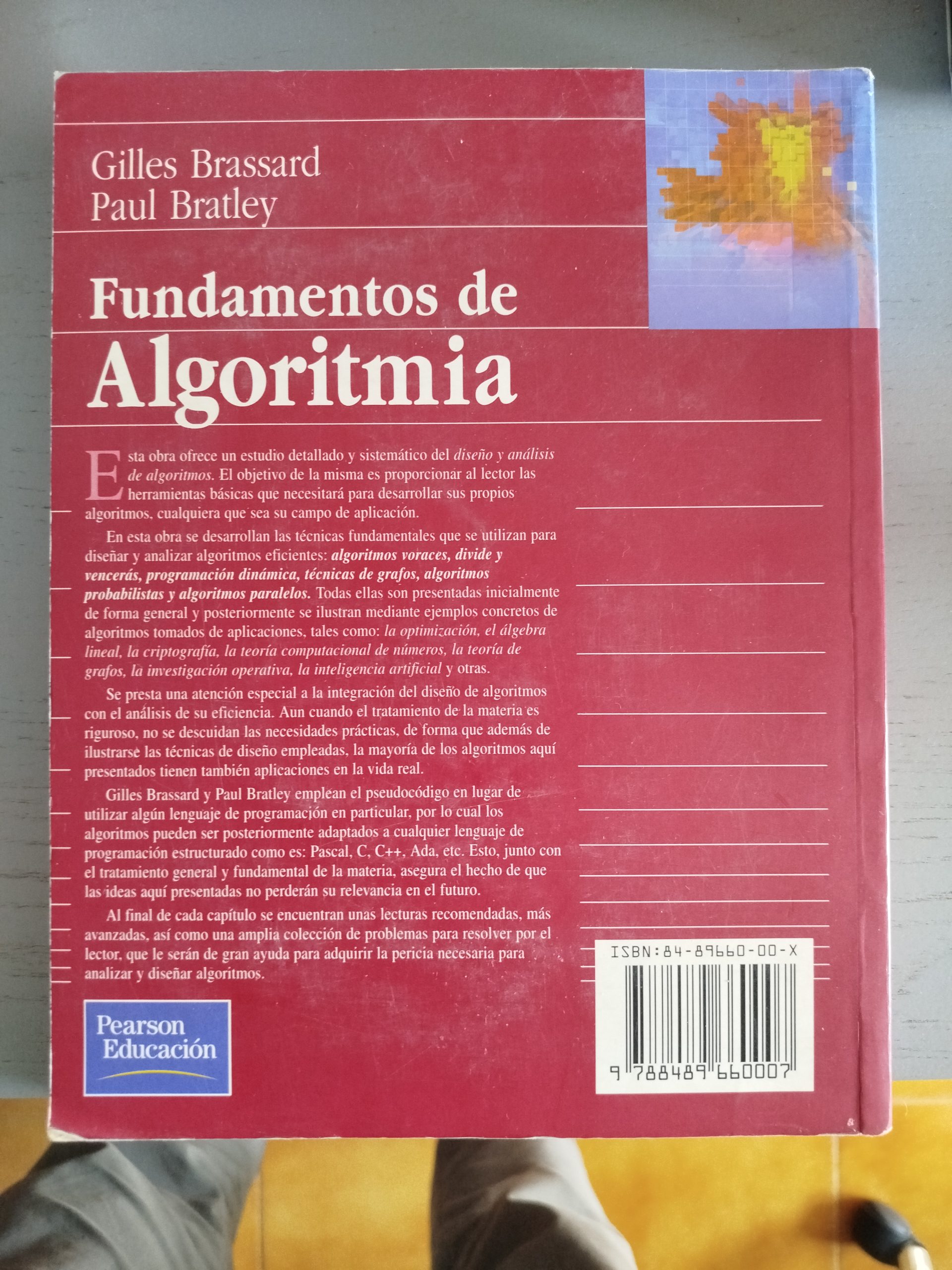Manual universitario que presenta de forma rigurosa las técnicas de diseño y análisis de algoritmos. Cubre enfoques como algoritmos voraces, divide y vencerás, programación dinámica, técnicas de grafos y algoritmos paralelos, con fundamentos matemáticos (optimización, álgebra lineal, criptografía, teoría de números, teoría de grafos, investigación operativa e IA). Utiliza pseudocódigo independiente del lenguaje y ofrece lecturas recomendadas y problemas al final de cada capítulo.