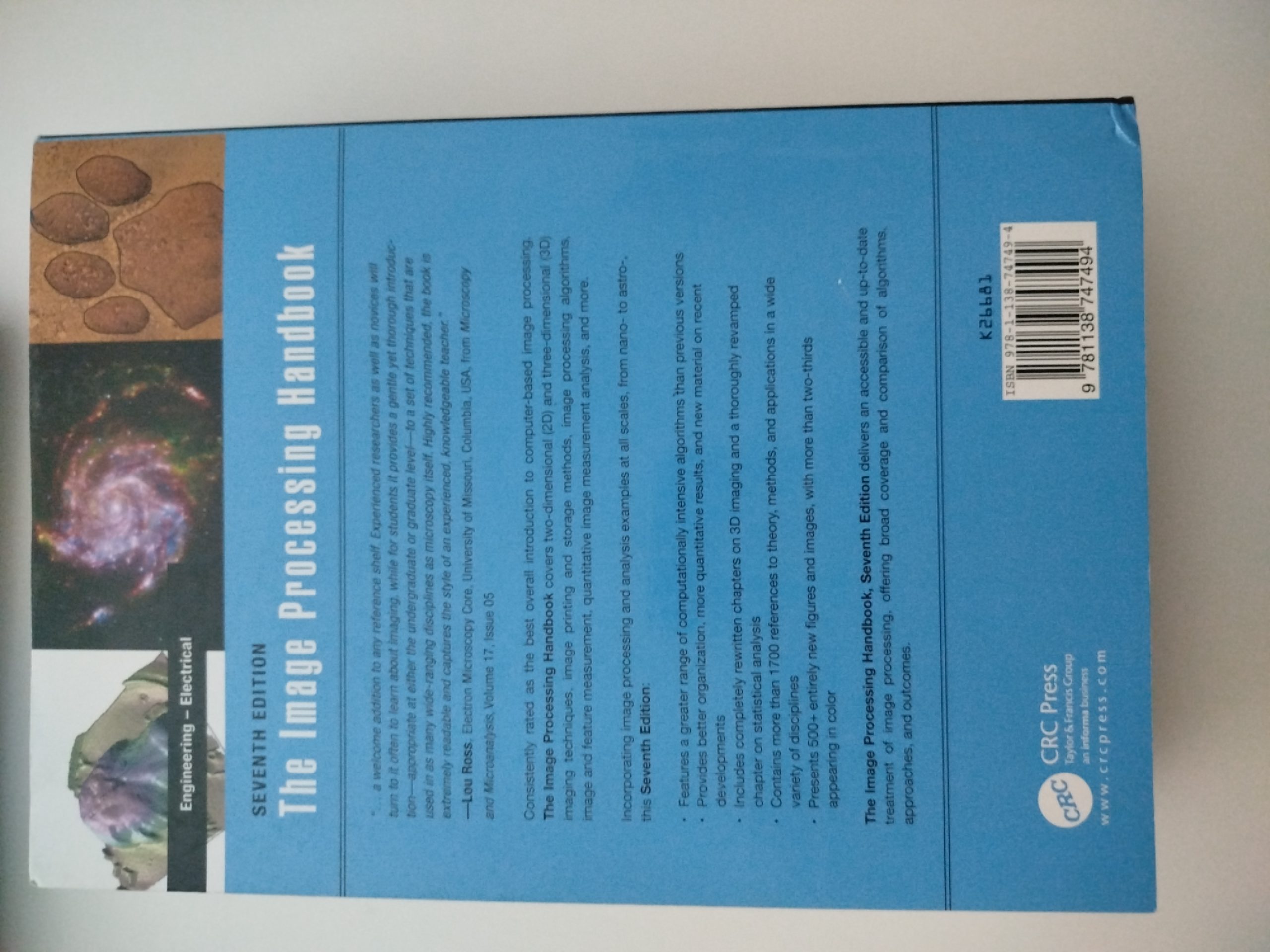 Manual de referencia completo sobre procesamiento digital de imágenes. Cubre fundamentos, técnicas y algoritmos contemporáneos, con ejemplos y aplicaciones en microscopía, materiales, biomedicina, astronomía y más. La séptima edición actualiza métodos, añade capítulos sobre 3D y nuevas métricas, y ofrece cientos de figuras e ilustraciones.