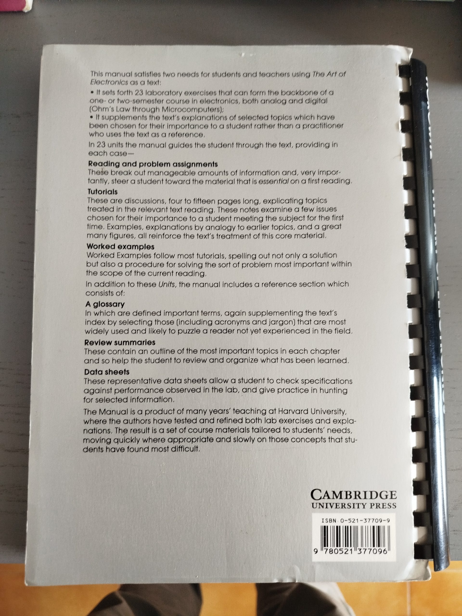 Manual del estudiante que acompaña a The Art of Electronics. Encuadernación de canutillo/plástico. Primera edición de Cambridge University Press.